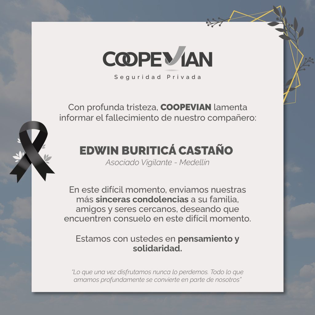 Gestión Humana, Noticias IntranetCOOPEVIAN lamenta el fallecimiento de nuestro compañero Edwin Buriticá Comunicaciones Coopevian / marzo 24, 2026