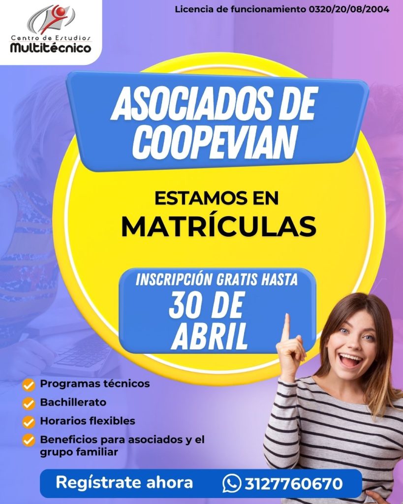 Gestión Humana, Noticias IntranetMatrículas en el Multitécnico hasta el 30 de abril Comunicaciones Coopevian / marzo 26, 2026