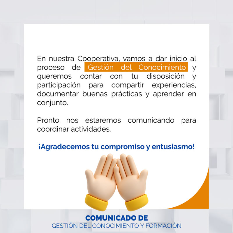 1 comentario en “En COOPEVIAN iniciamos el proceso de Gestión del conocimiento”